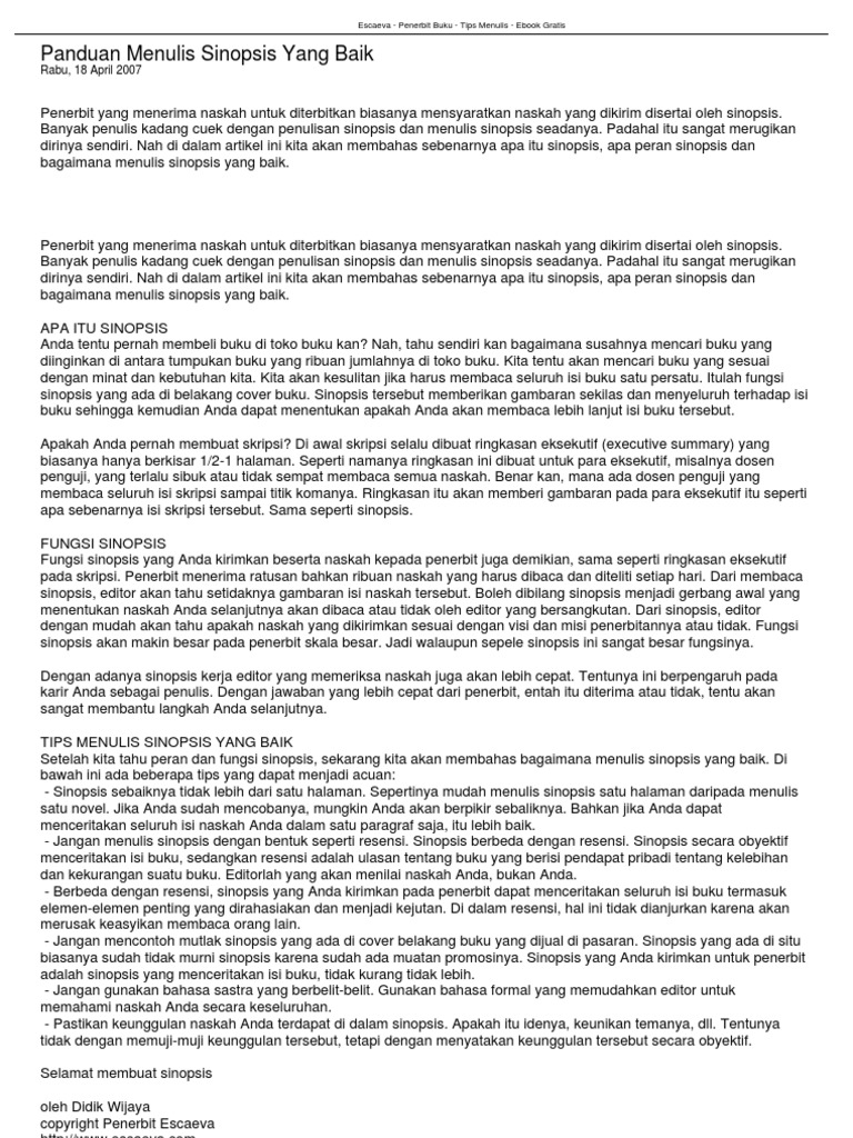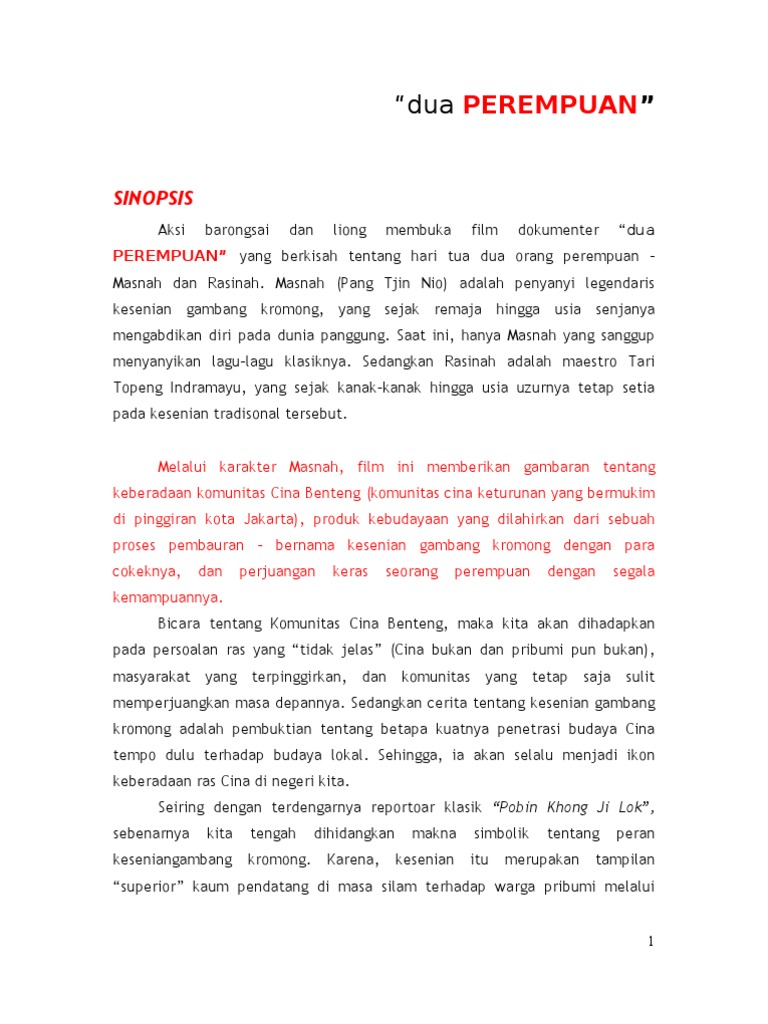 Contoh Sinopsis from imgv2-2-f.scribdassets.com Berikut ini adalah tiga contoh sinopsis film pendek karya anak bangsa. Pengertian, unsur, cara membuat, dan contohnya. / check spelling or type a new query. Sinopsis adalah tulisan yang menggambarkan isi secara keseluruhan secara singkat dari suatu karya yang disinopsis dengan tujuan agar pembaca tertarik membaca karya yang disinopsis.. Cara menulis sinopsis yang baik sebaiknya tidak lebih dari satu halaman karena sinopsis itu merupakan ringkasan dari isi buku yang ditulis, bukan ulasan apalagi pendapat pribadi. Intinya, bahasa yang digunakan dalam penyusunan sinopsis adalah bahasa estetik yang dibuat semenarik mungkin. Tarian cik puan adalah sebuah jenis tarian yang menunjukkan kekuatan dan ketangkasan dalam keberanian seorang wanita cantik dan lembut bernama cik puan. Dalam tahapan selanjutnya, biasanya sinopsis naik level menjadi treatment.